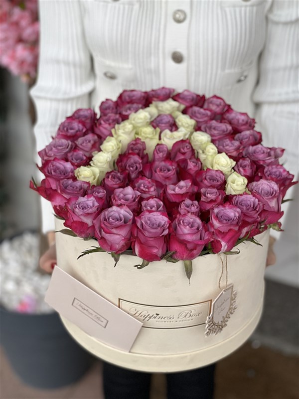 - Bej Kadife Mega Kutuda yaklaşık 45-50 adet ithal güller ve seçtiğiniz harf ile hazırlanmaktadır.