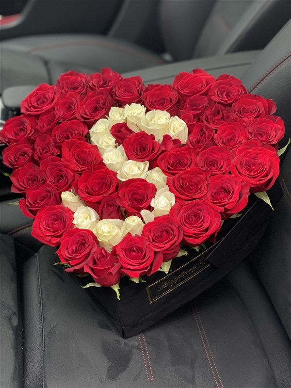 - Büyük boy siyah kadife kalpli kutunun içinde yaklaşık 45-55 adet ithal kırmızı güller ile hazırlanmaktadır. Harf seçeneği bölümünden seçtiğiniz harf ile hazırlanır.