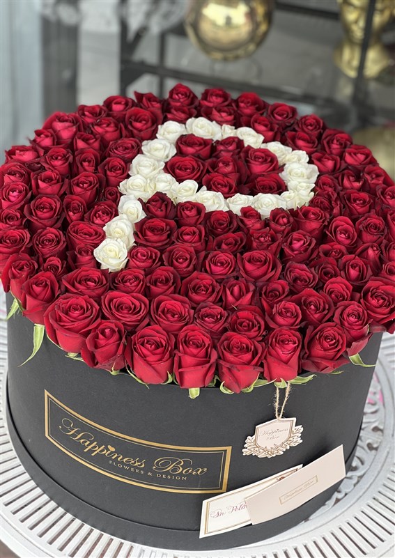 - Siyah Dev Kutuda Kırmızı Güller ve Seçtiğiniz Harf Beyaz Güller İle Hazırlanmaktadır.