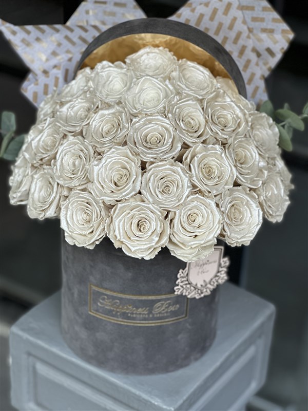 Serena Füme Kadife Kutuda Sedefli Beyaz Solmayan Güller
