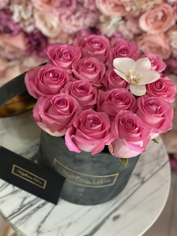 - Füme Silindir Kutunun İçinde yaklaşık 15-18 adet ithal iri kafa pembeı güller ile hazırlanır.