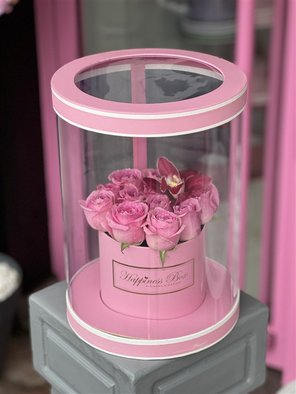 - Silindir Tasarım Kutunun İçinde yaklaşık 10 adet ithal pembe güller ile hazırlanır.