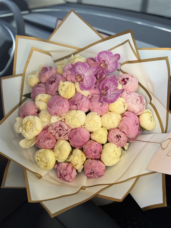 20 pembe 20 beyaz İthal Şakayık ile Hazırlanmaktadır.