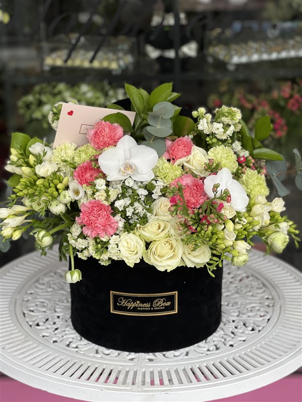 - Siyah Mega Kadife Kutuda Beyaz- Pembe Tonlarında Aranjman