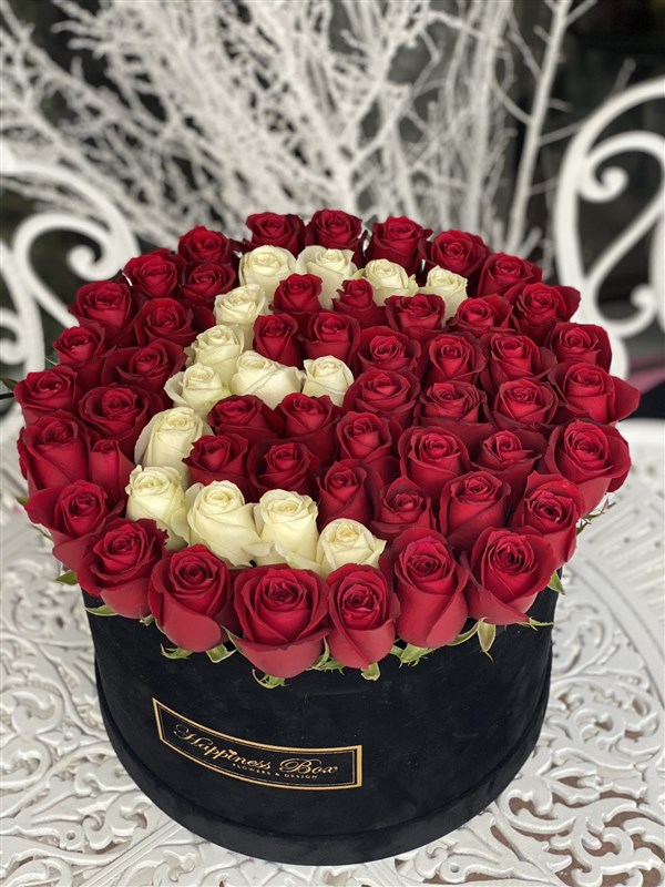 -Mega siyah kadife silindir kutunun içinde yaklaşık 45-50 adet ithal Kırmızı Güller ile hazırlanmaktadır.