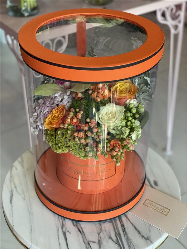 - Turuncu Silindir Asetat Kutuda Turuncu- Yeşil Tonlarında Aranjman.